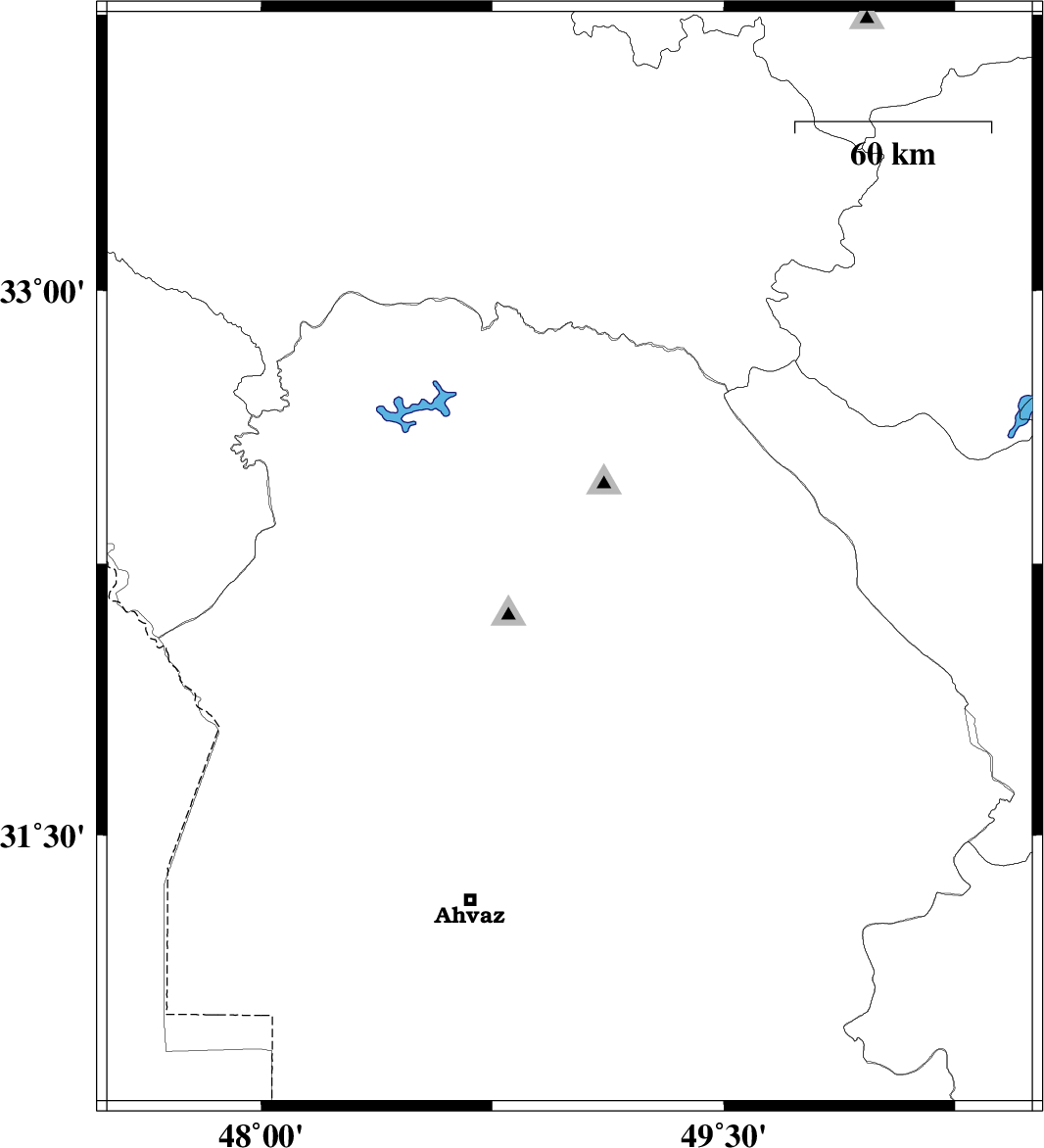 | 2007/08/27 | 04:16:57.5 | 07:46:57.5 | 31.26 | 49.56 | 45 | ML2.6 | 5 km Ramhormoz, Khoozestan Province | ||