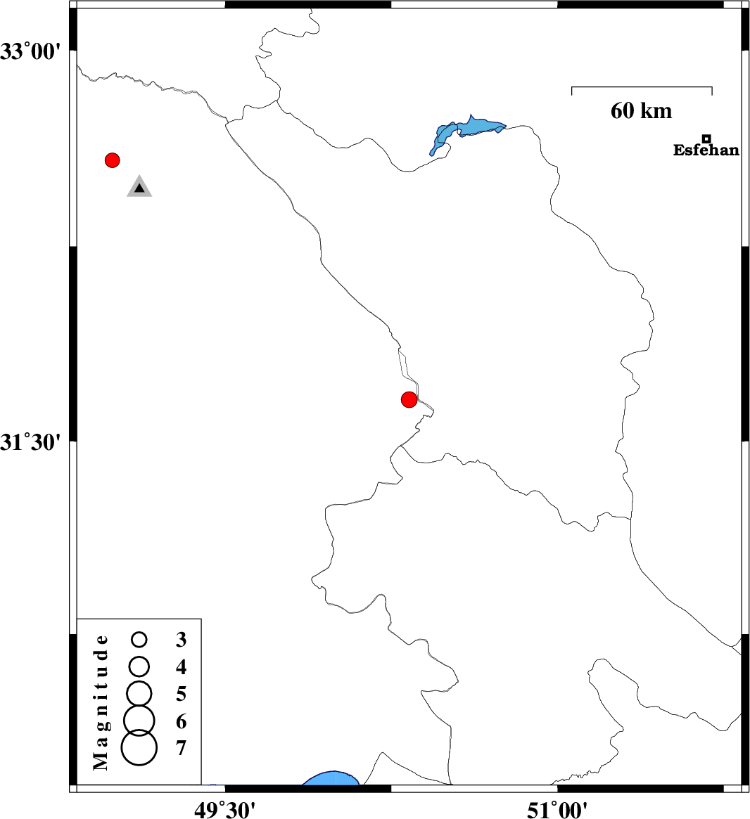 | 2007/08/15 | 06:06:13.7 | 09:36:13.7 | 31.66 | 50.33 | 14 | ML3.2 | 43 km North-East of Bagh Malek, Khoozestan Province | ||