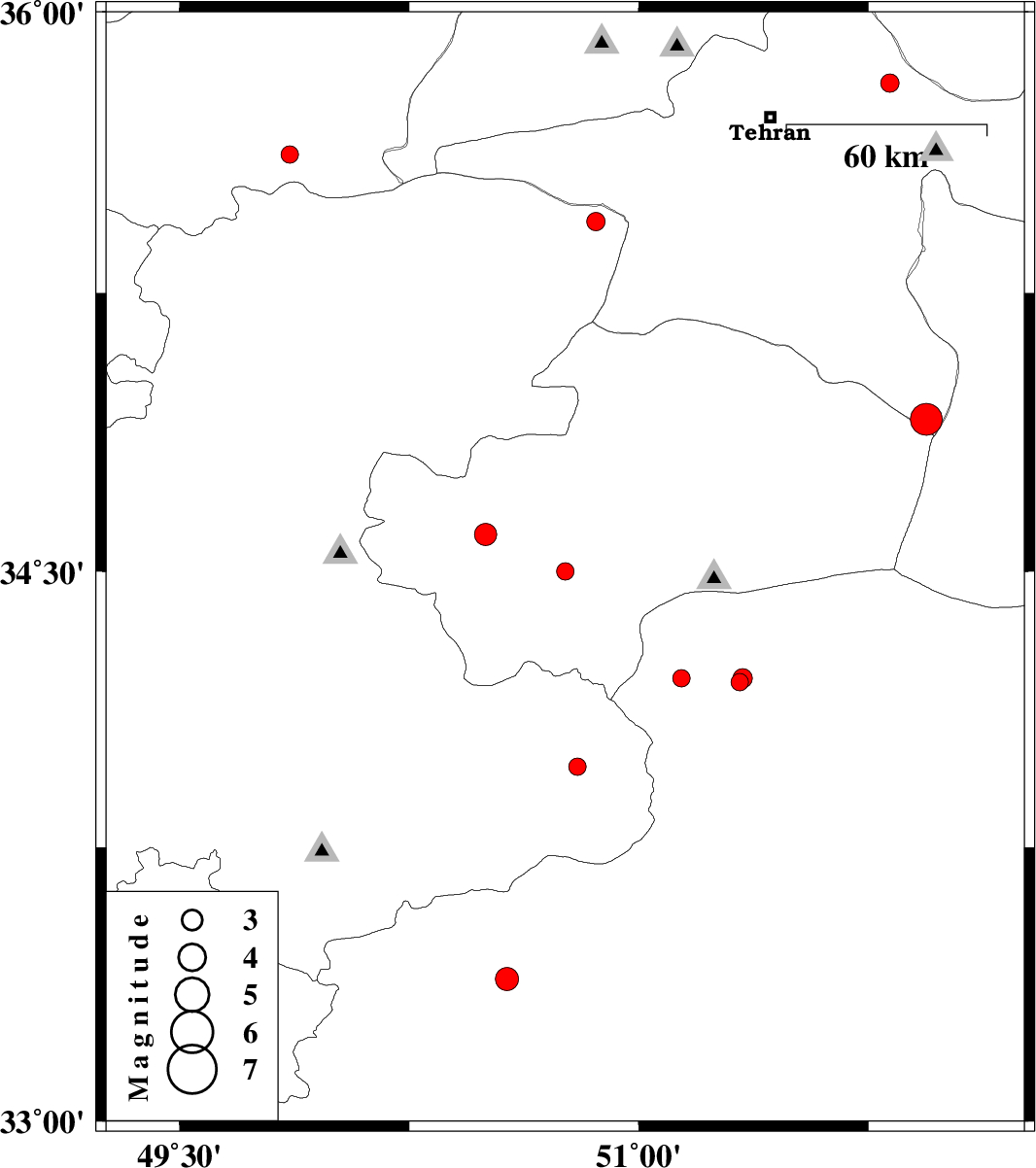 | 2007/09/14 | 07:40:35.5 | 11:10:35.5 | 35.44 | 50.86 | 43 | ML2.7 | 20 km West of Robatkarim, Tehran Province | ||