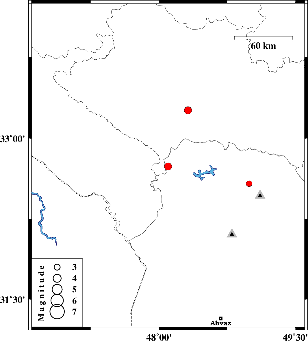 | 2007/08/13 | 04:22:06.5 | 07:52:06.5 | 32.58 | 48.99 | 16 | ML3 | 23 km North-West of Lali, Khoozestan Province |