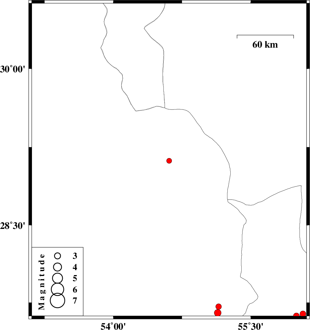 | 2007/07/21 | 05:20:15.9 | 08:50:15.9 | 27.71 | 55.15 | 37 | ML2.8 | 80 km East of Lar, Fars Province |