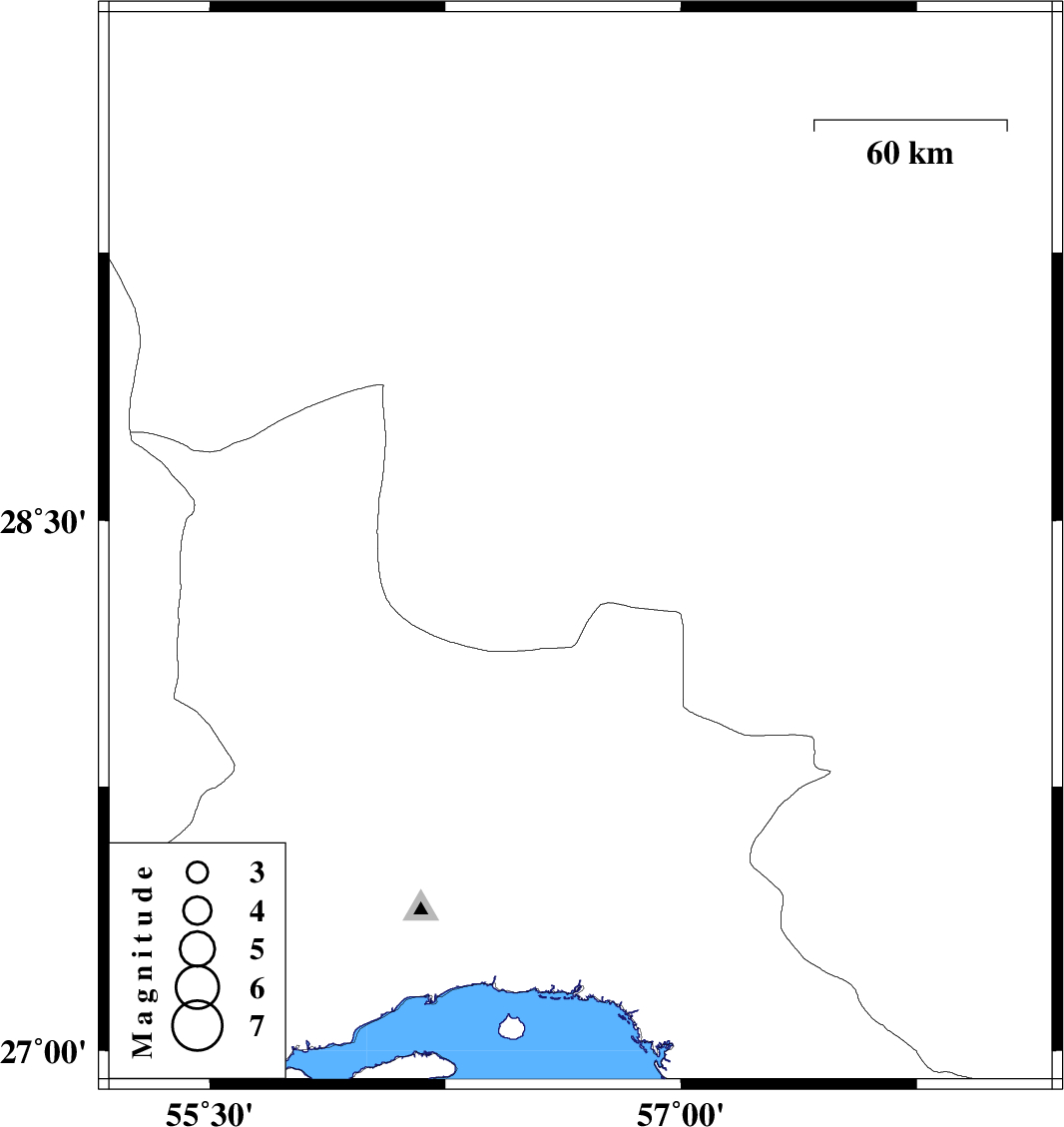 | 2007/08/25 | 04:24:22.8 | 07:54:22.8 | 28.42 | 56.68 | 14 | ML4.5 | 77 km North-East of Hajiabad, Hormozgan Province |