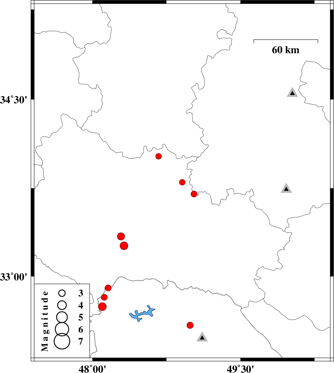 | 2007/08/14 | 17:39:55.2 | 21:09:55.2 | 33.26 | 48.32 | 39 | ML3.6 | 25 km South of Khorramabad, Lorestan Province | ||