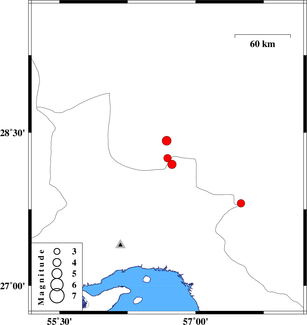 | 2007/08/28 | 08:44:02.0 | 12:14:02.0 | 27.81 | 57.5 | 15 | ML3.8 | 24 km South-West of Kahnuj, Kerman Province | ||