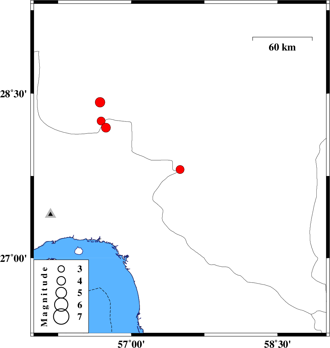 | 2007/08/28 | 08:44:02.0 | 12:14:02.0 | 27.81 | 57.5 | 15 | ML3.8 | 24 km South-West of Kahnuj, Kerman Province | ||
