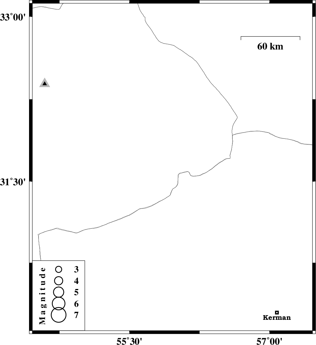 | 2007/10/12 | 14:40:35.7 | 18:10:35.7 | 31.62 | 55.96 | 14 | ML3.5 | 53 km East of Bafq, Yazd Province |