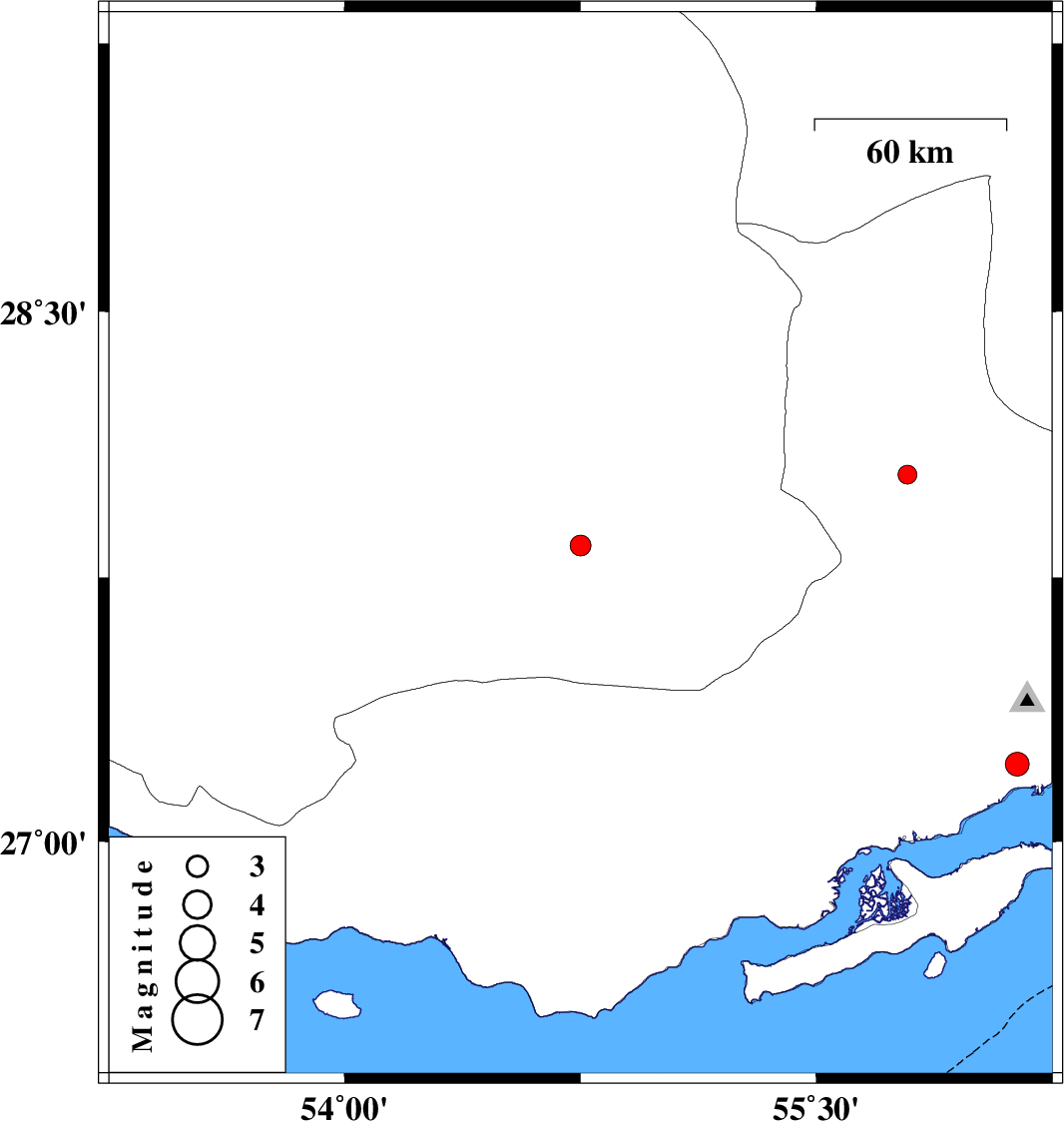 | 2007/10/17 | 11:59:02.4 | 15:29:02.4 | 27.84 | 54.75 | 18 | ML2.9 | 43 km North-East of Lar, Fars Province | ||