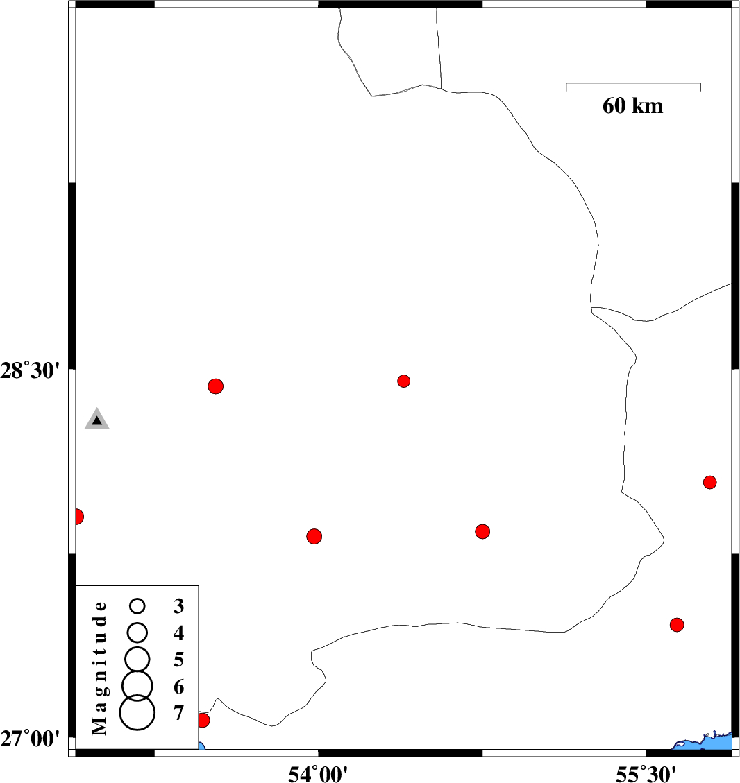 | 2007/10/17 | 11:59:02.4 | 15:29:02.4 | 27.84 | 54.75 | 18 | ML2.9 | 43 km North-East of Lar, Fars Province | ||