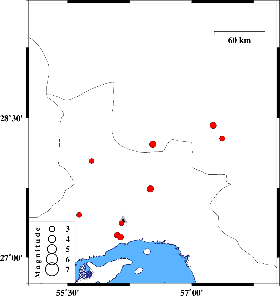 2007/09/26 | 16:19:02.6 | 19:49:02.6 | 27.46 | 55.64 | 14 | ML2.8 | 70 km North-West of Bandar-e abbas, Hormozgan Province | ||