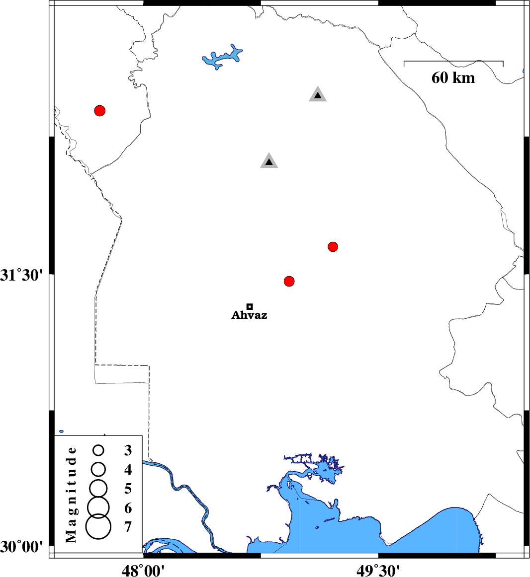 | 2007/10/20 | 03:11:23.0 | 06:41:23.0 | 31.46 | 48.93 | 10 | ML3 | 28 km North-East of Ahvaz, Khoozestan Province | ||
