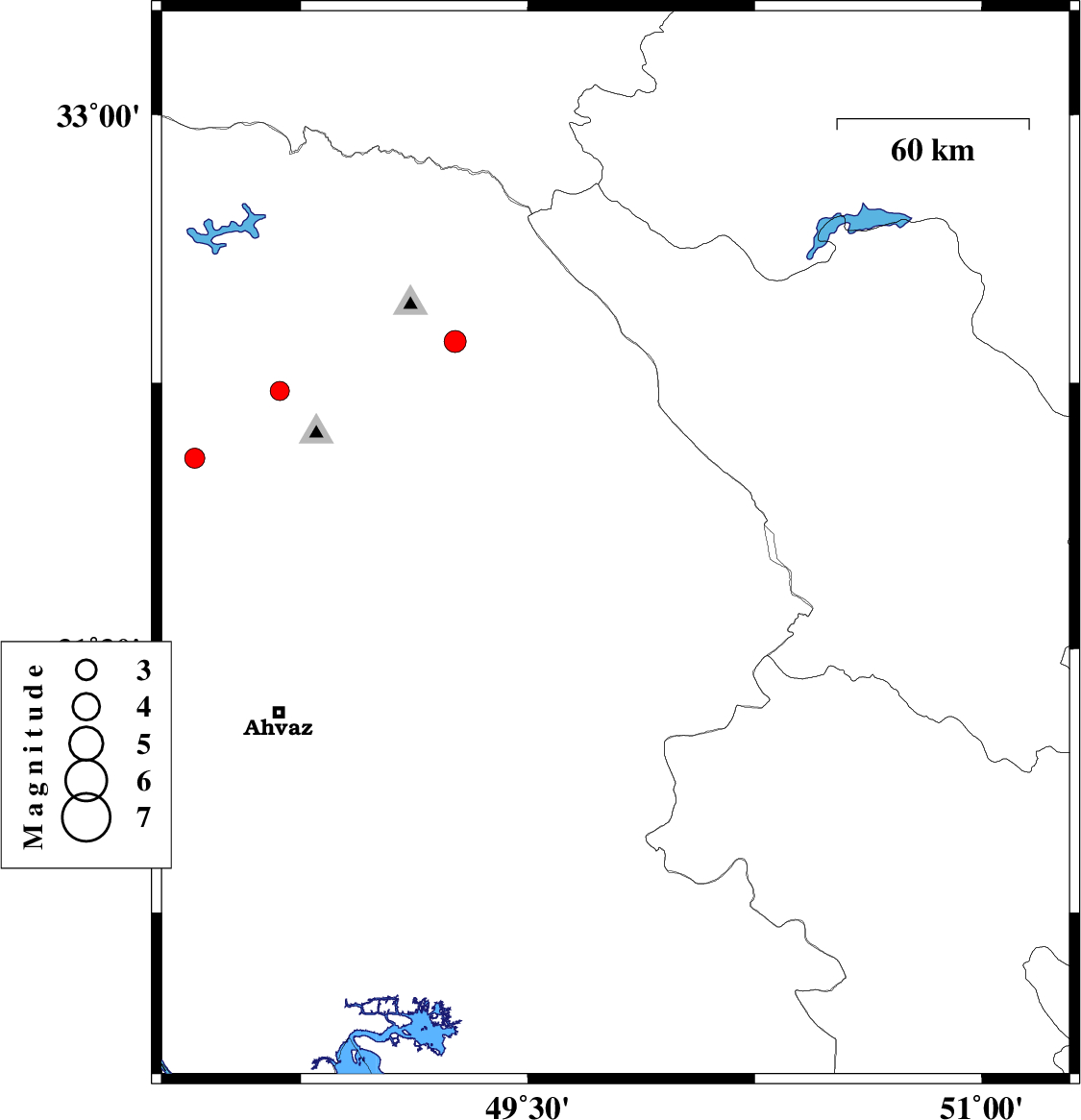 | 2007/10/24 | 19:11:02.1 | 22:41:02.1 | 31.79 | 49.79 | 18 | ML3.2 | 8 km Izeh, Khoozestan Province | ||