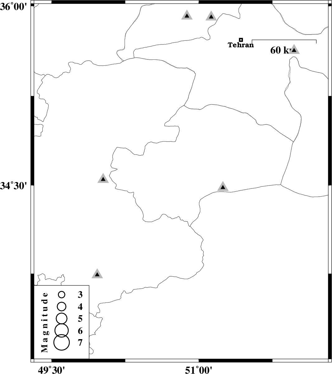 | 2007/10/26 | 19:51:07.5 | 23:21:07.5 | 34.52 | 50.82 | 32 | ML2.5 | 15 km South of Qom, Qom Province |
