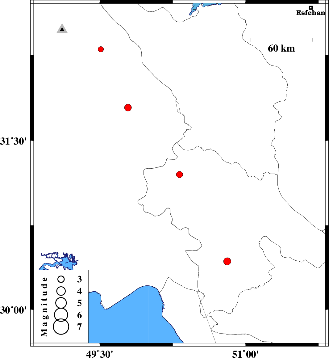 | 2007/10/24 | 19:11:02.1 | 22:41:02.1 | 31.79 | 49.79 | 18 | ML3.2 | 8 km Izeh, Khoozestan Province |
