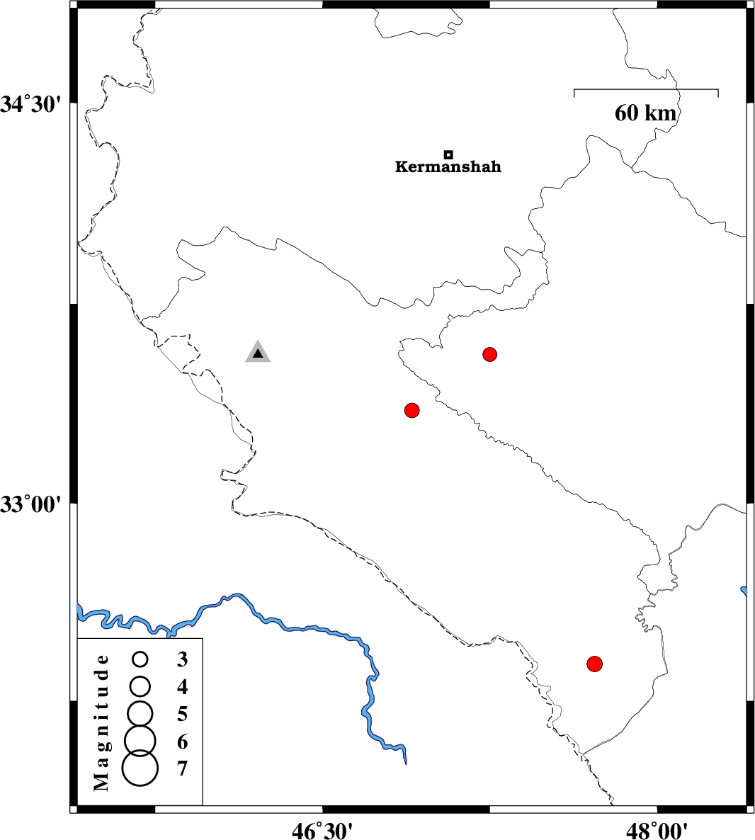 | 2007/10/30 | 23:39:31.5 | 03:09:31.5 | 33.35 | 46.9 | 14 | ML3 | 45 km North-West of Darreh Shahr, Ilam Province | ||