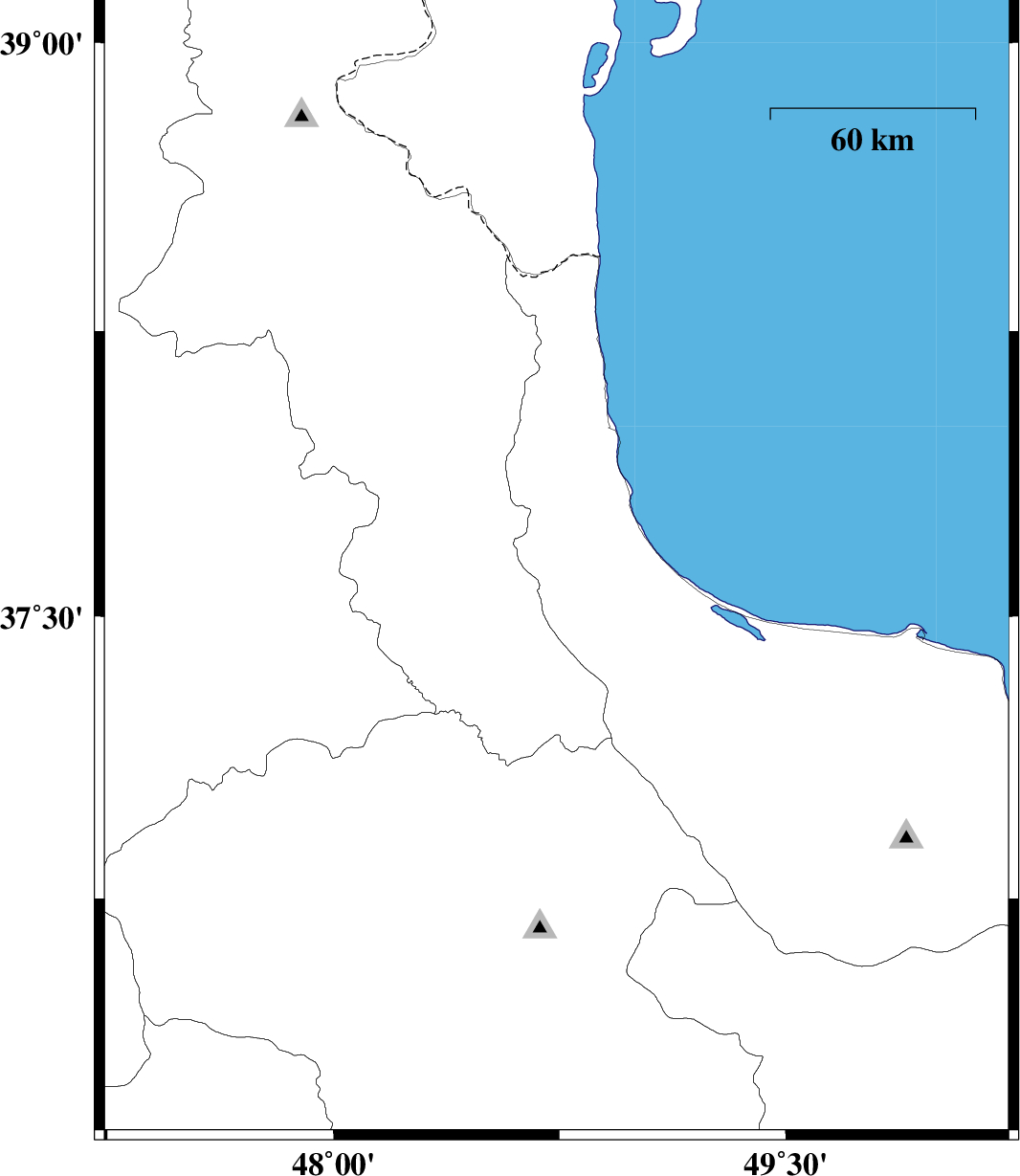 | 2007/11/05 | 22:14:41.3 | 01:44:41.3 | 38 | 49.03 | 18 | ML2.6 | Caspian Sea, 24 km North-East of Hashtpar |