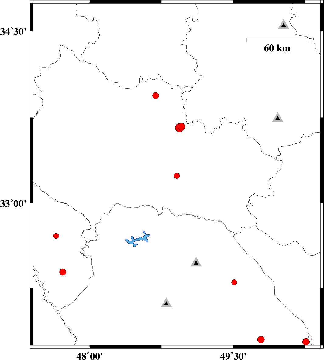| 2007/10/24 | 19:11:02.1 | 22:41:02.1 | 31.79 | 49.79 | 18 | ML3.2 | 8 km Izeh, Khoozestan Province | ||