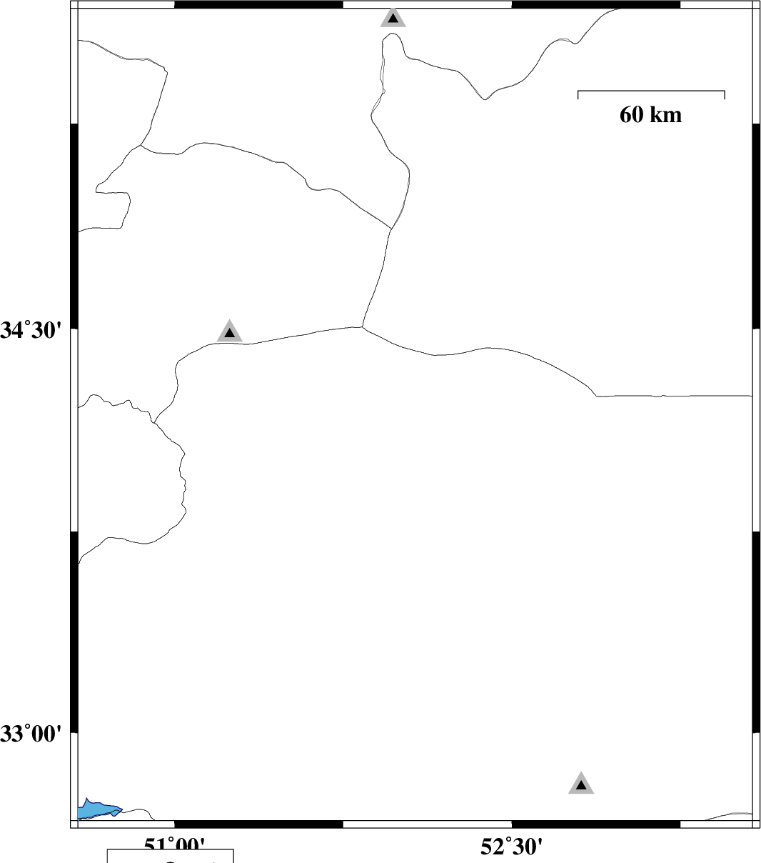 | 2007/11/13 | 21:45:14.9 | 01:15:14.9 | 34.17 | 52.07 | 39 | ML3.2 | 56 km North-East of Aran va bidgol, Esfahan Province |