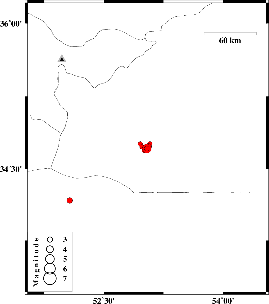 2007/11/19 16:58:48.3 20:28:48.3 34.7352.9827 ML2.7 80 km South-East of Garmsar, Semnan Province