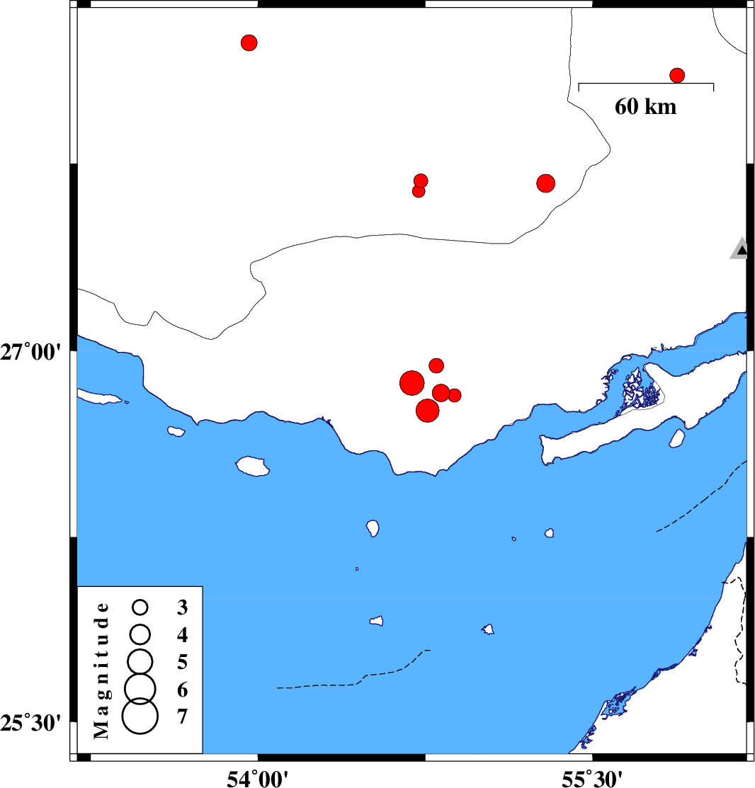 2007/11/22 05:45:46.8 09:15:46.8 26.8254.8818 ML2.7 32 km North of Bandar-e lengeh, Hormozgan Province