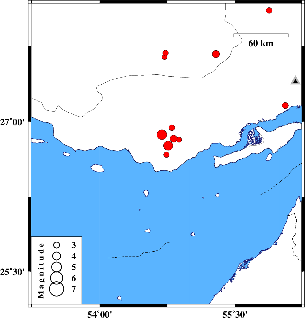 2007/11/22 05:45:46.8 09:15:46.8 26.8254.8818 ML2.7 32 km North of Bandar-e lengeh, Hormozgan Province