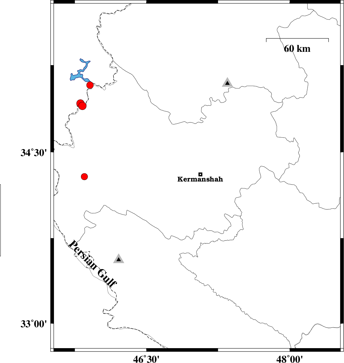 | 2007/11/29 | 01:10:47.4 | 04:40:47.4 | 34.12 | 46.93 | 15 | ML3.7 | 23 km South-West of Kermanshah, Kermanshah Province | ||