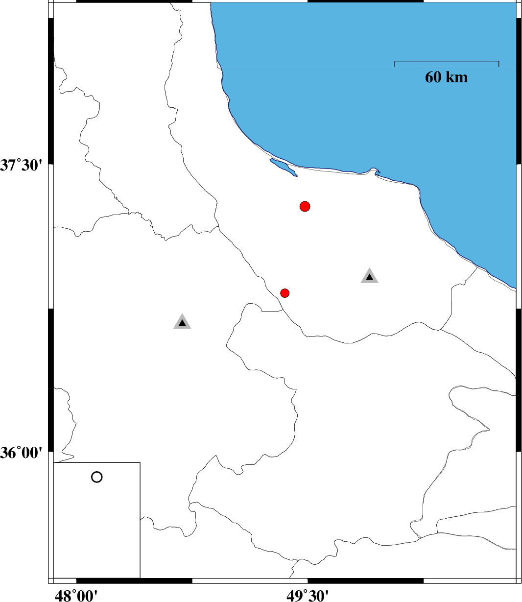 | 2007/12/02 | 19:07:15.6 | 22:37:15.6 | 37.28 | 49.48 | 15 | ML3 | 9 km West of Rasht, Gilan Province |