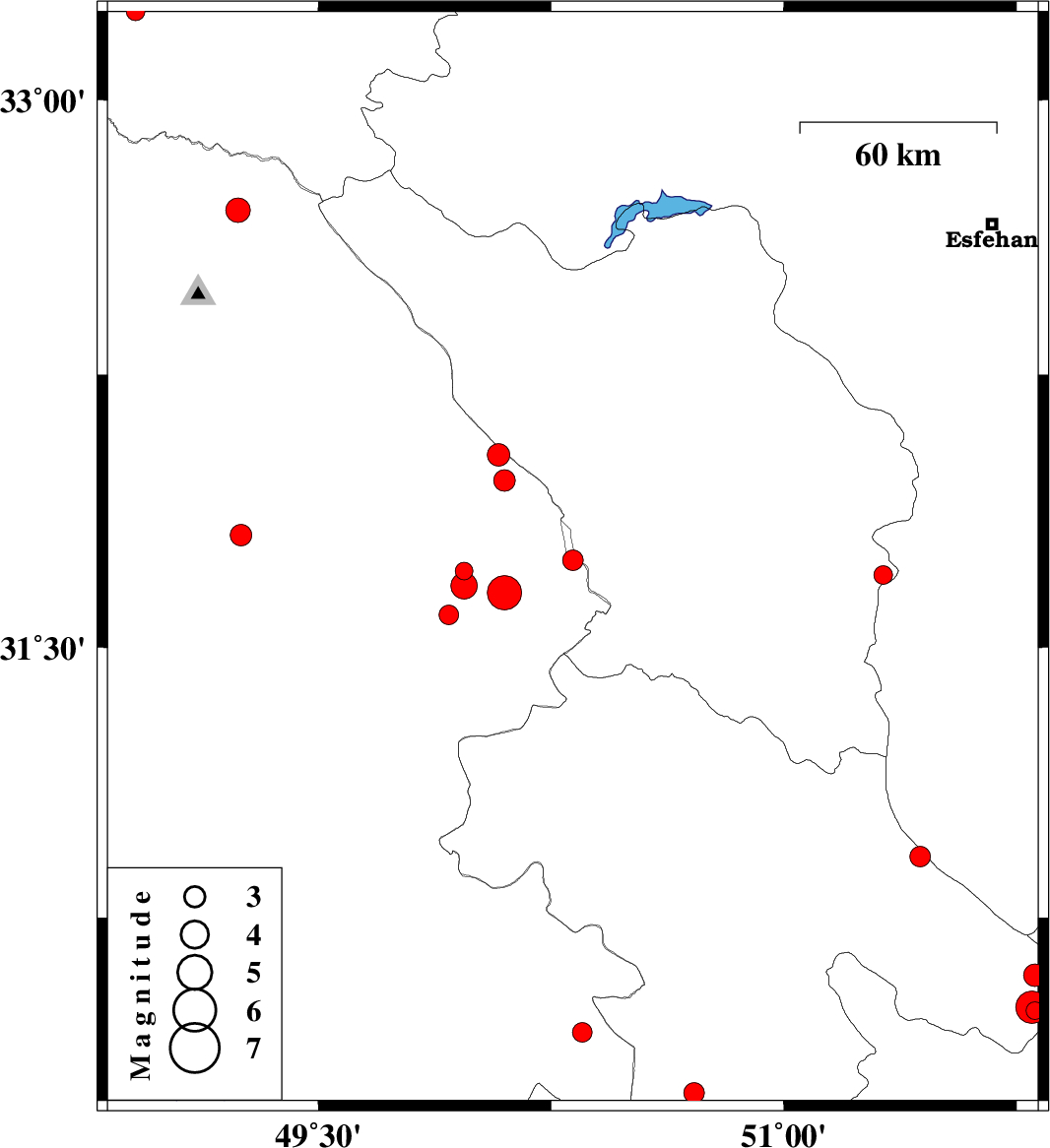 2007/11/27 | 02:44:19.9 | 06:14:19.9 | 31.7 | 51.32 | 14 | ML2.7 | 30 km South of Borujen, Chaharmahal Bakhtiari Province | ||