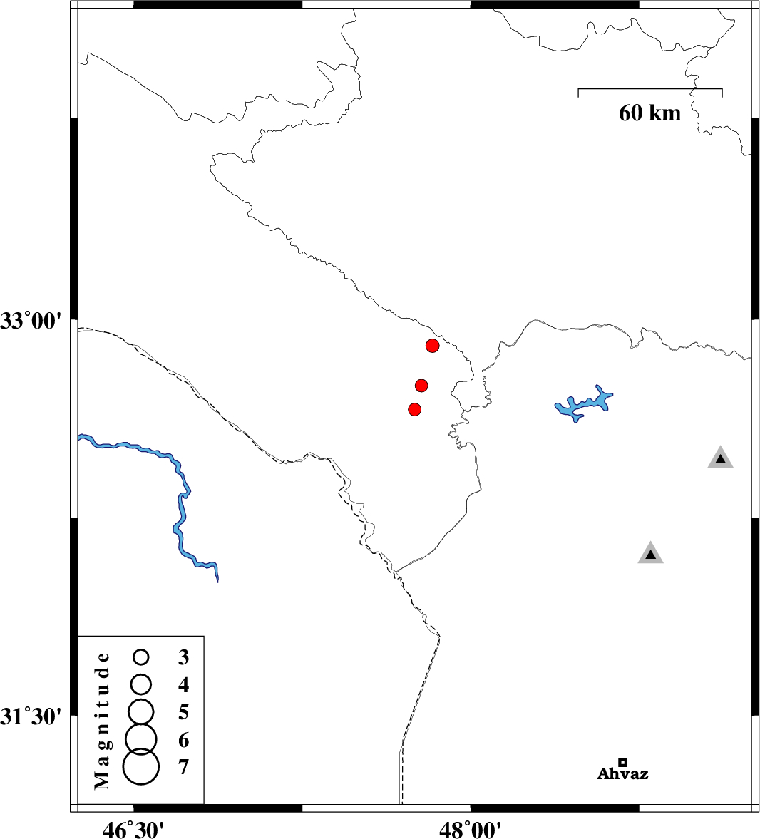 2007/12/12 | 09:56:46.7 | 13:26:46.7 | 32.66 | 47.75 | 14 | ML2.5 | 40 km South-East of Abdanan, Ilam Province | ||