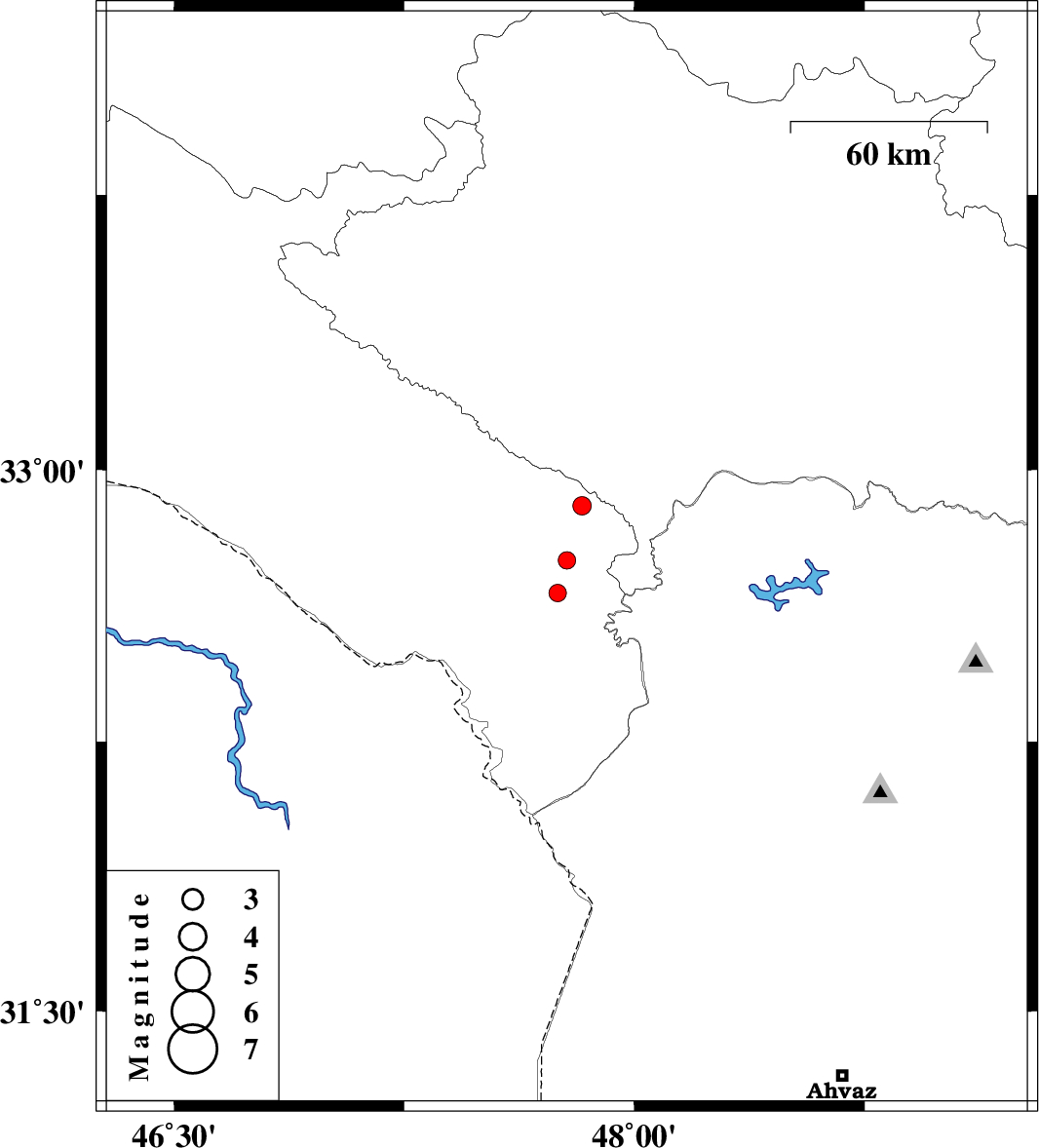 | 2007/12/06 | 13:53:39.1 | 17:23:39.1 | 32.9 | 47.83 | 14 | ML2.7 | 29 km South-East of Pol-e dokhtar, Lorestan Province |