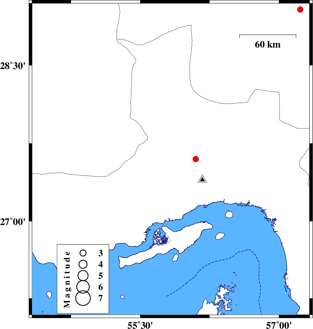 2007/12/13 | 01:34:26.5 | 05:04:26.5 | 27.59 | 55.83 | 14 | ML2.8 | 63 km North-West of Bandar-e abbas, Hormozgan Province | ||