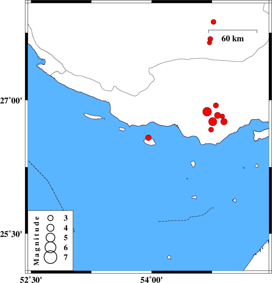 2007/11/22 | 05:08:39.0 | 08:38:39.0 | 26.94 | 54.8 | 16 | ML2.9 | 45 km North of Bandar-e lengeh, Hormozgan Province | ||