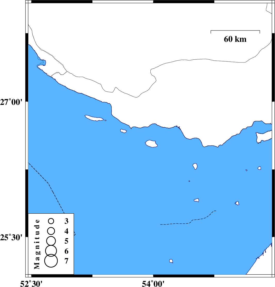 2007/12/18 | 17:53:51.1 | 21:23:51.1 | 26.58 | 53.96 | 14 | ML3.2 | Persian Gulf, 79 km South-West of Bastak |