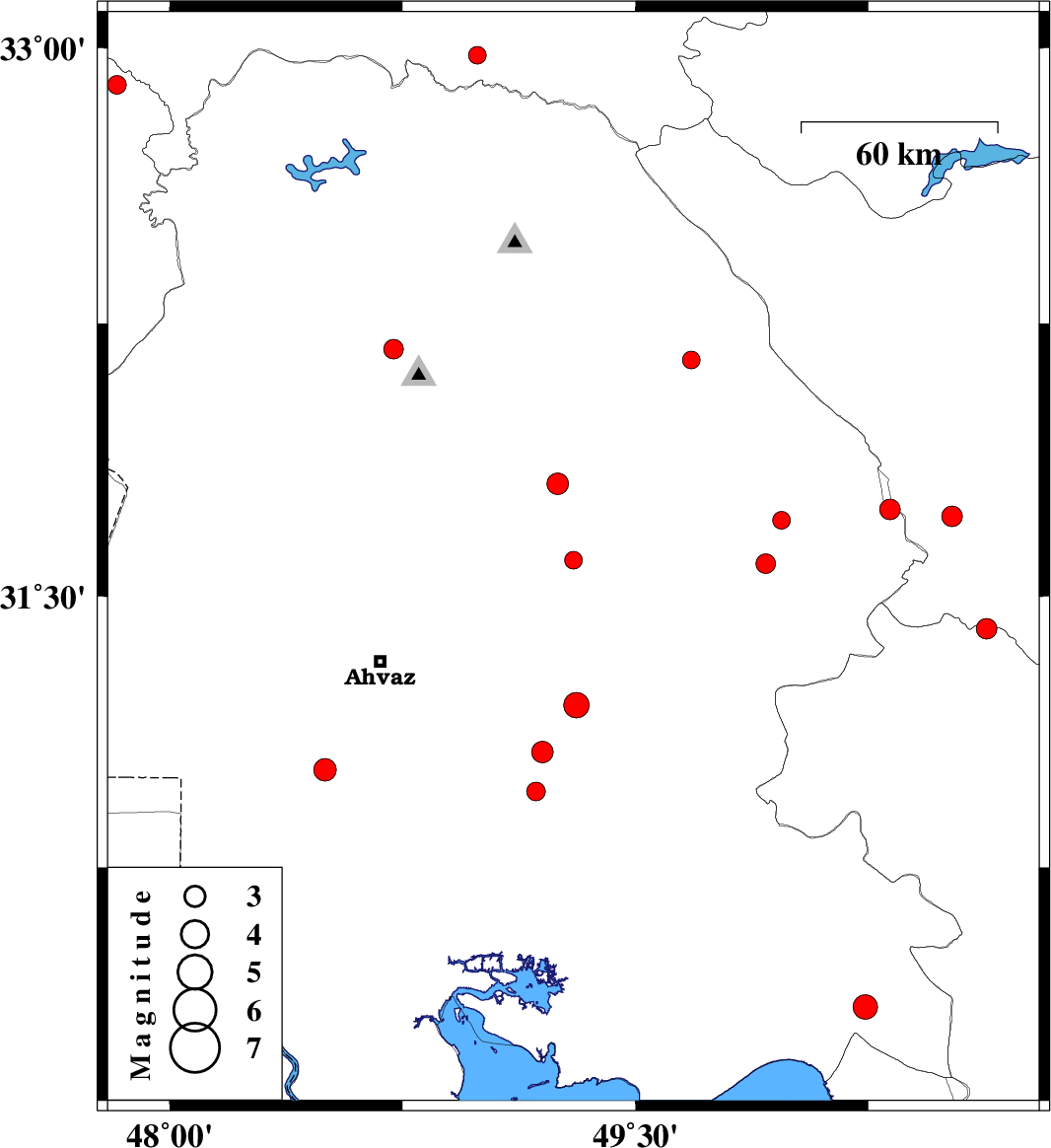 2007/12/25 | 13:15:47.9 | 16:45:47.9 | 31.02 | 48.5 | 22 | ML3.3 | 37 km South-West of Ahvaz, Khoozestan Province | ||