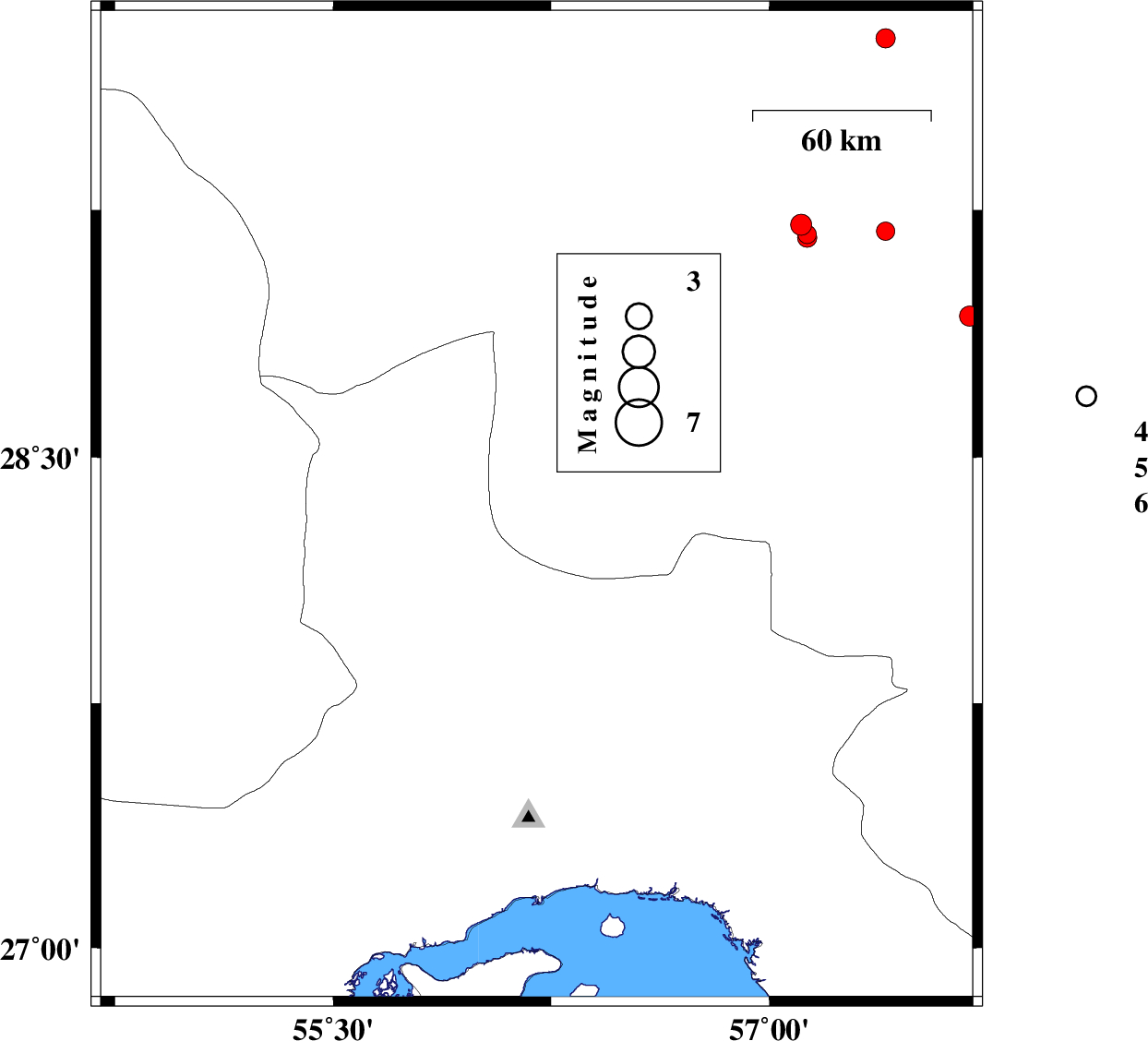 2007/12/28 | 17:11:41.2 | 20:41:41.2 | 27.44 | 56.63 | 13 | ML3.7 | 44 km North-East of Bandar-e abbas, Hormozgan Province | ||