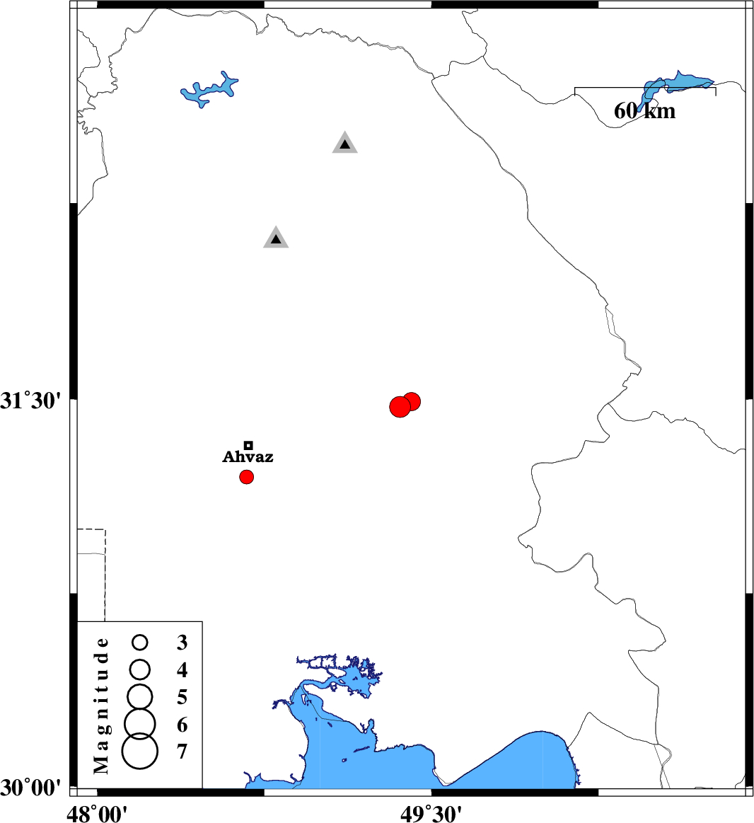 2007/12/31 03:19:51.0 06:49:51.0 31.248.6718 ML2.8 13 km South of Ahvaz, Khoozestan Province