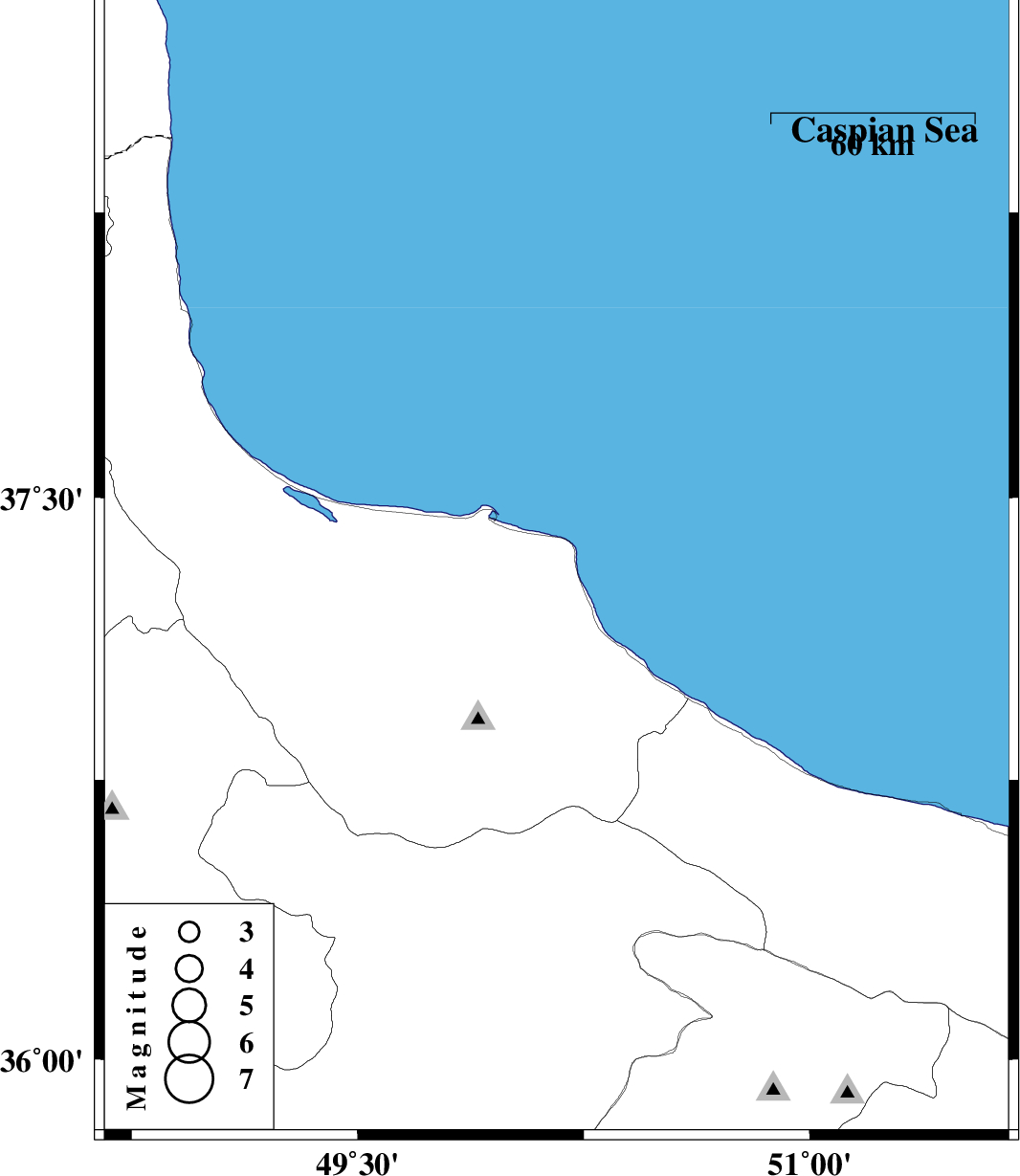| 2008/01/07 | 01:37:51.7 | 05:07:51.7 | 37.31 | 50.16 | 17 | ML2.5 | 13 km North of Langarud, Gilan Province |