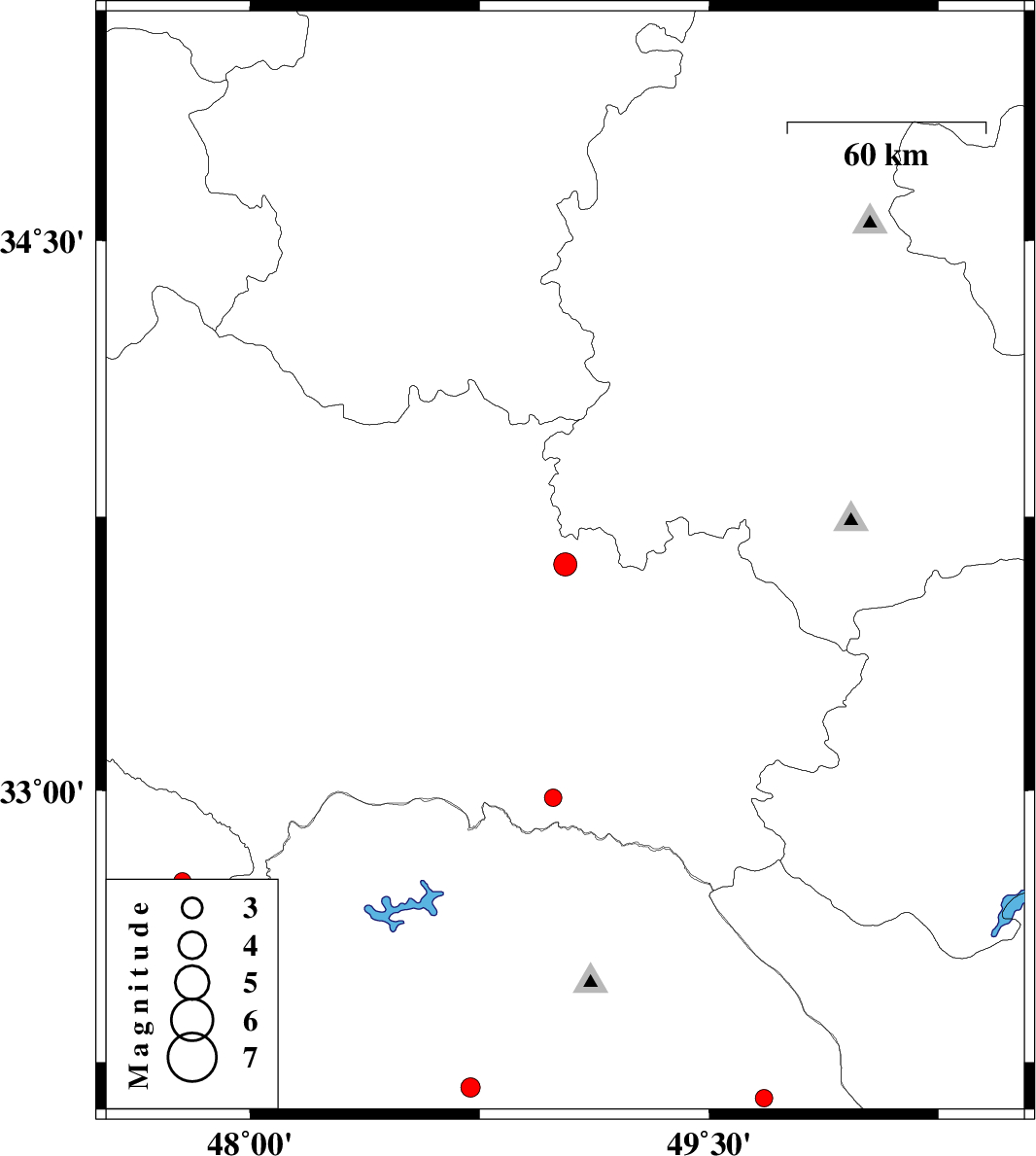 2007/12/19 | 18:07:52.3 | 21:37:52.3 | 32.98 | 48.99 | 16 | ML2.5 | 56 km South of Dorud, Lorestan Province | ||
