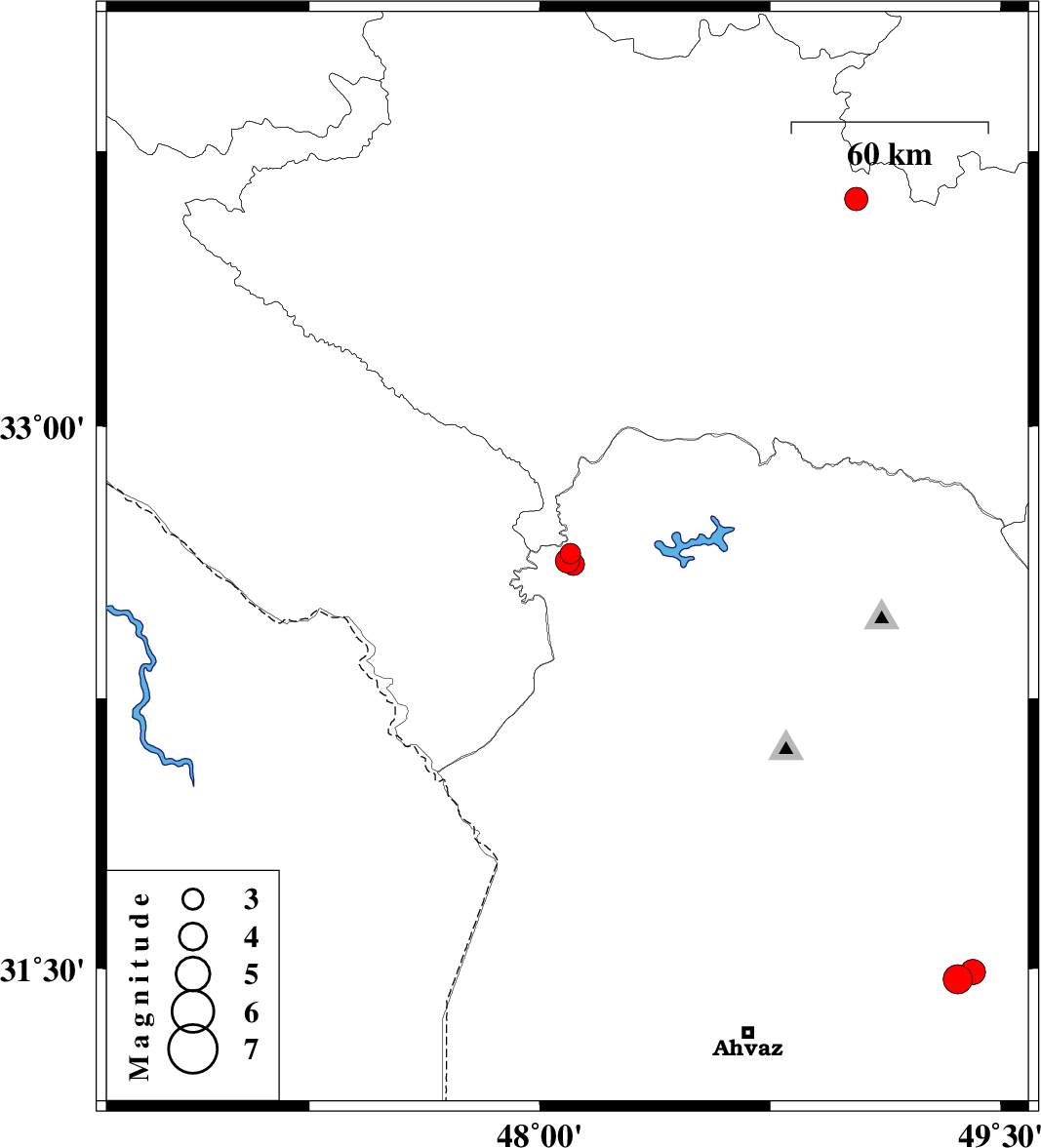 2008/01/05 07:09:48.8 10:39:48.8 31.4949.4126 ML3.7 30 km North-West of Ramhormoz, Khoozestan Province