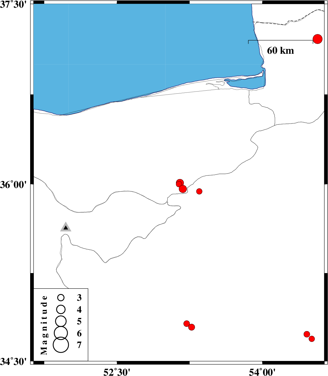 2008/01/14 07:52:34.9 11:22:34.9 3653.1416 ML2.7 15 km South of Pol-E-Sefid, Mazandaran Province