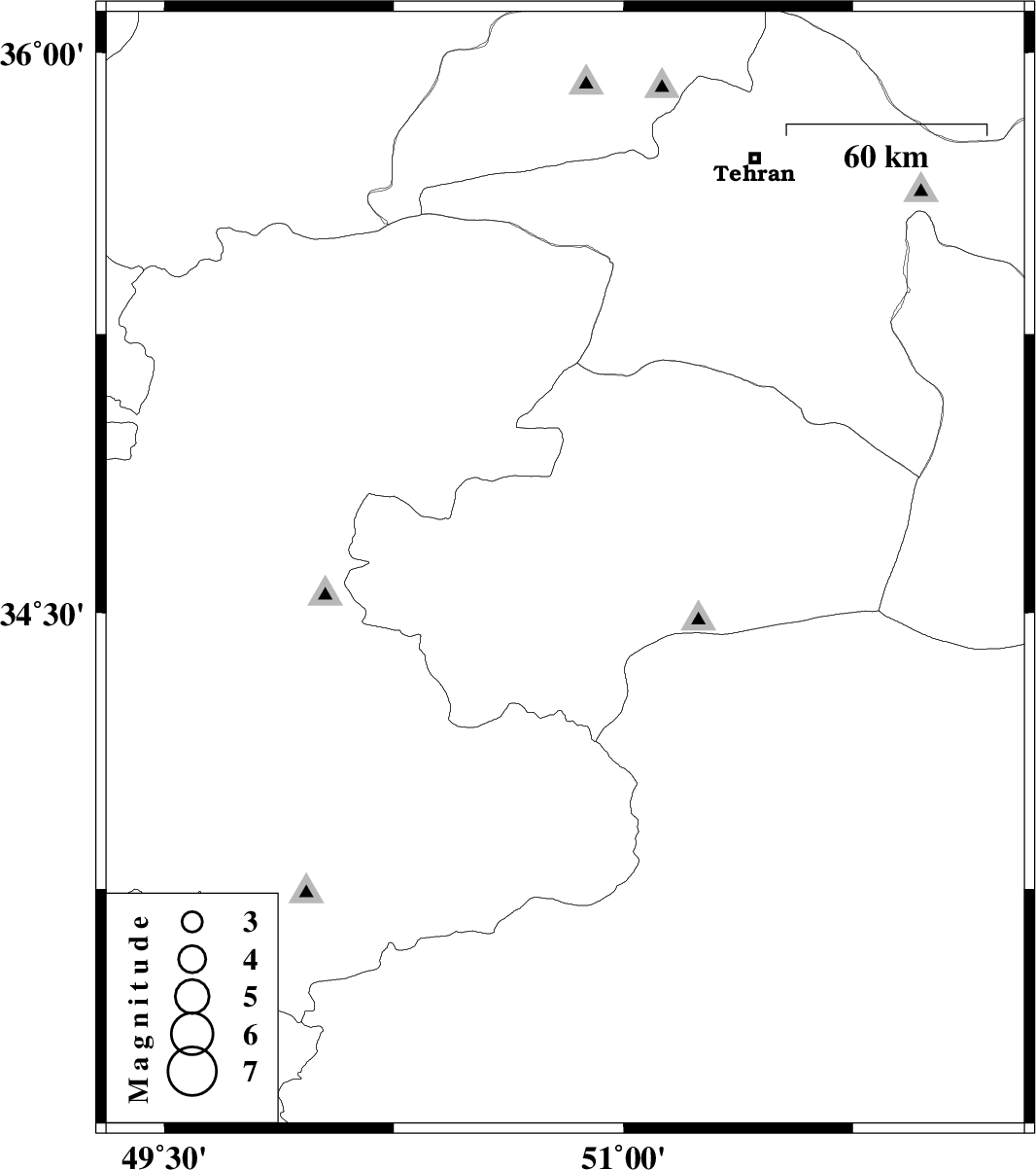 | 2008/01/14 | 10:33:34.5 | 14:03:34.5 | 34.61 | 50.81 | 17 | ML2.5 | 6 km Qom, Qom Province |