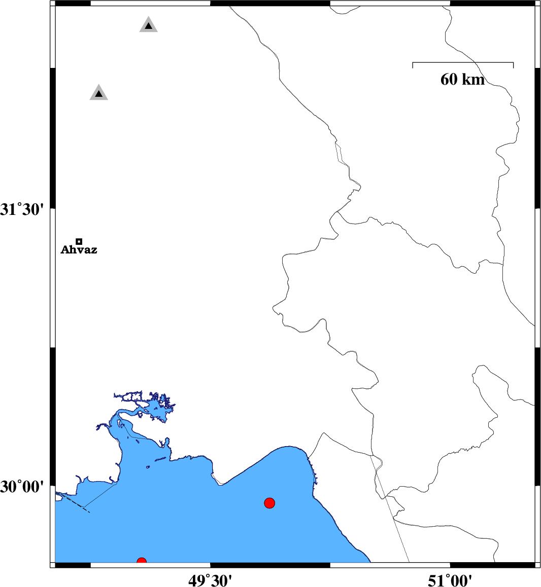 2008/01/16 | 00:10:08.1 | 03:40:08.1 | 31.08 | 50.03 | 41 | ML2.9 | 45 km South-East of Ramhormoz, Khoozestan Province | ||