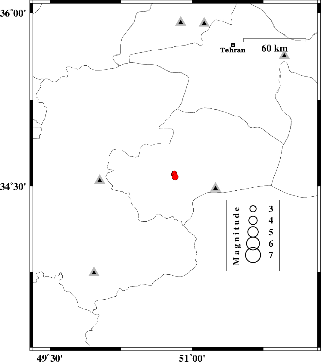 | 2008/01/14 | 10:33:34.5 | 14:03:34.5 | 34.61 | 50.81 | 17 | ML2.5 | 6 km Qom, Qom Province |