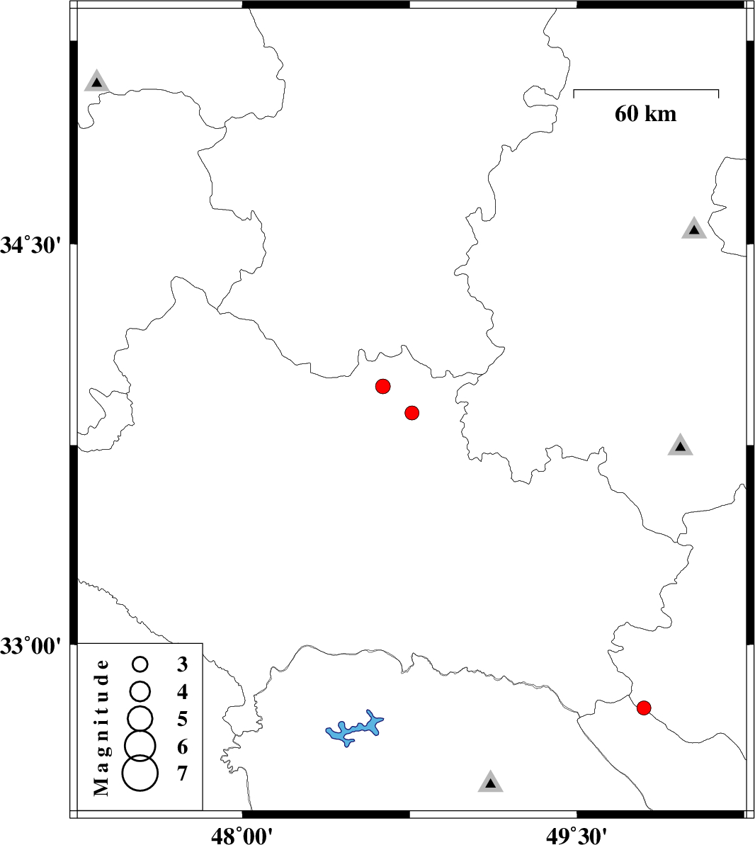 2008/01/22 | 23:29:50.2 | 02:59:50.2 | 33.97 | 48.63 | 15 | ML2.9 | 14 km West of Borujerd, Lorestan Province | ||