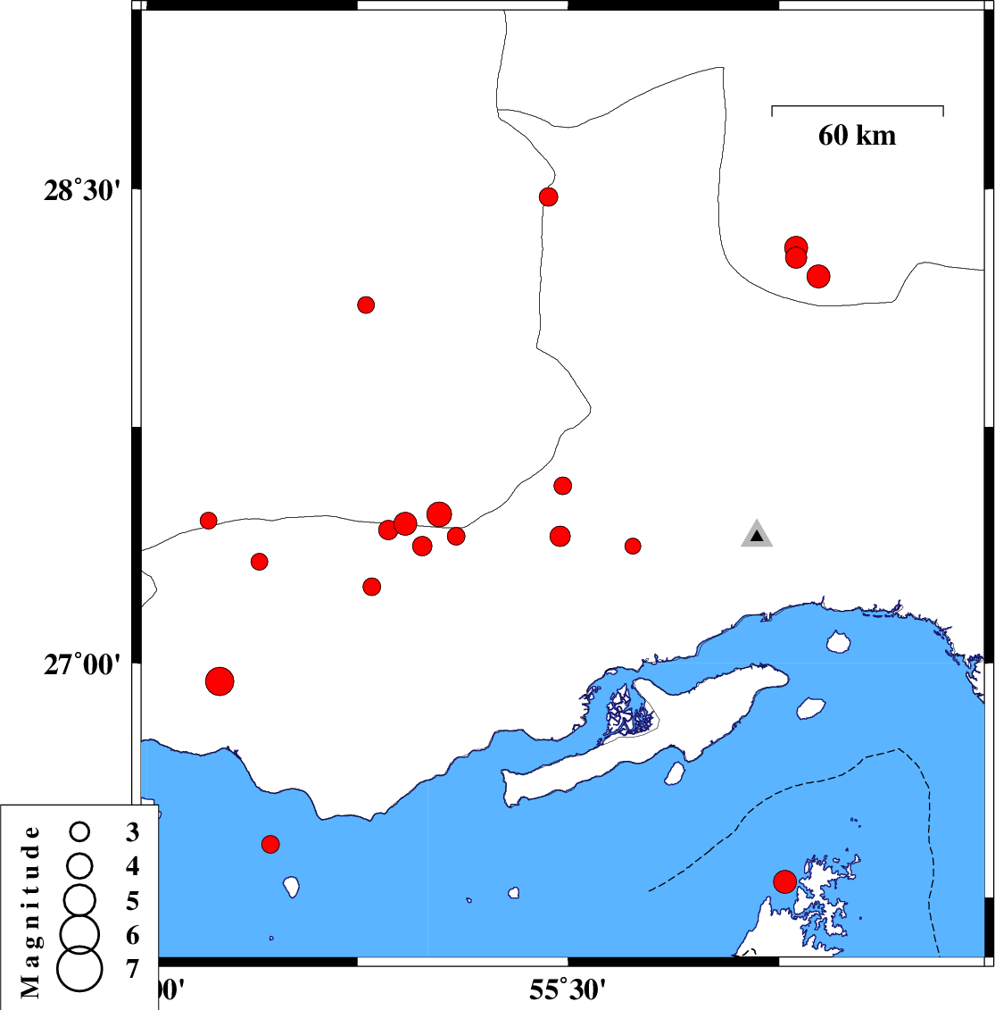 2008/02/11 14:03:46.2 17:33:46.2 27.6655.5414 ML4 80 km South-West of Hajiabad, Hormozgan Province