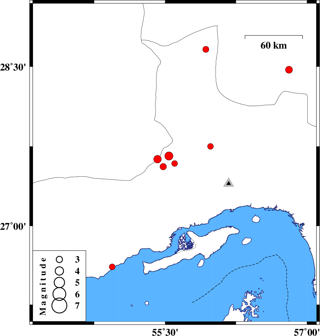 2008/02/10 | 02:12:21.3 | 05:42:21.3 | 26.61 | 54.94 | 35 | ML2.8 | 13 km Bandar-e lengeh, Hormozgan Province | ||