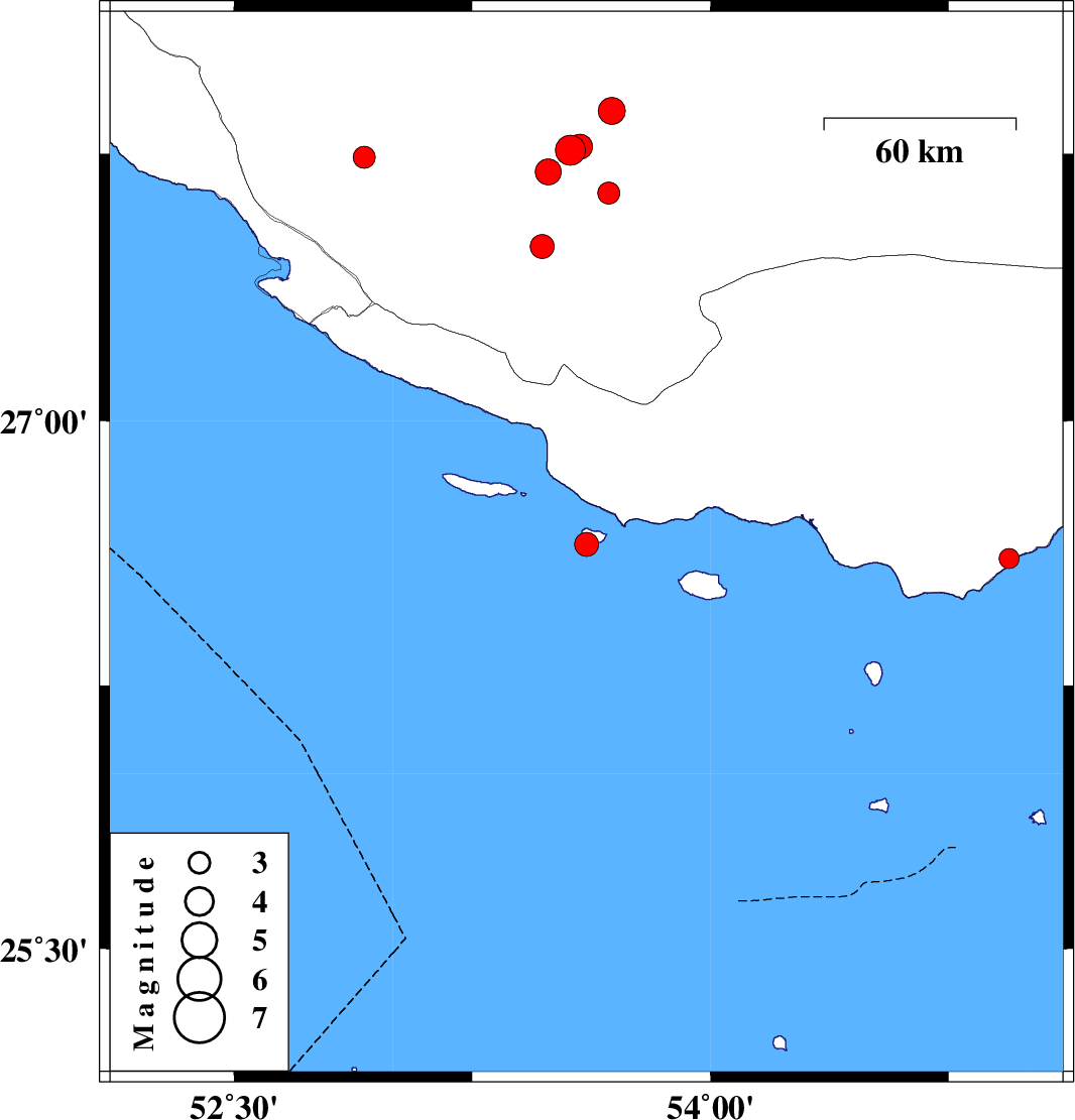 2008/02/11 | 19:10:37.2 | 22:40:37.2 | 26.65 | 53.61 | 39 | ML3.4 | Persian Gulf, 87 km South-East of Lamerd | ||