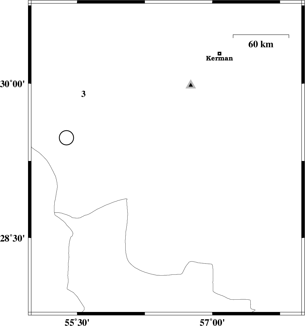 2008/02/14 | 05:52:14.0 | 09:22:14.0 | 29.27 | 56.49 | 14 | ML2.9 | 12 km West of Baft, Kerman Province |