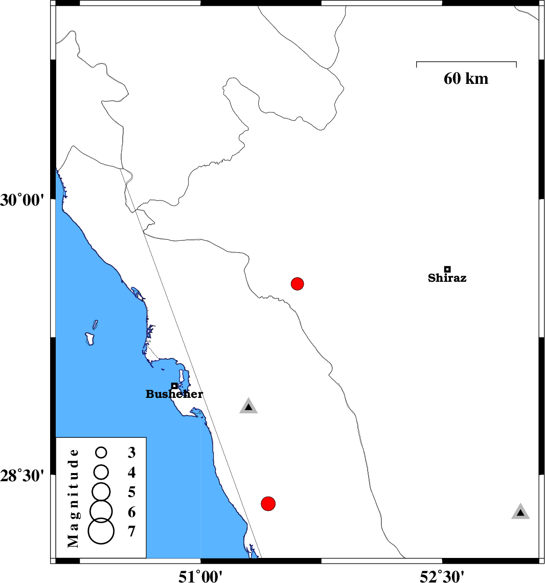 | 2008/02/25 | 20:17:57.5 | 23:47:57.5 | 28.34 | 51.42 | 18 | ML4 | 34 km South of Khormog, Bushehr Province |