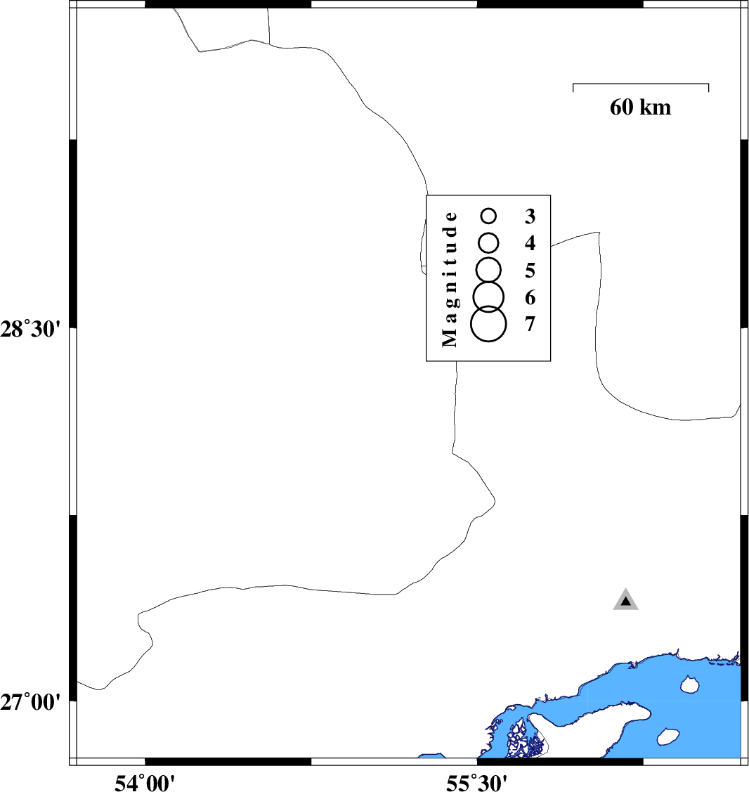 2008/02/29 | 00:08:18.8 | 03:38:18.8 | 28.27 | 55.19 | 34 | ML3.2 | 69 km West of Hajiabad, Hormozgan Province | ||