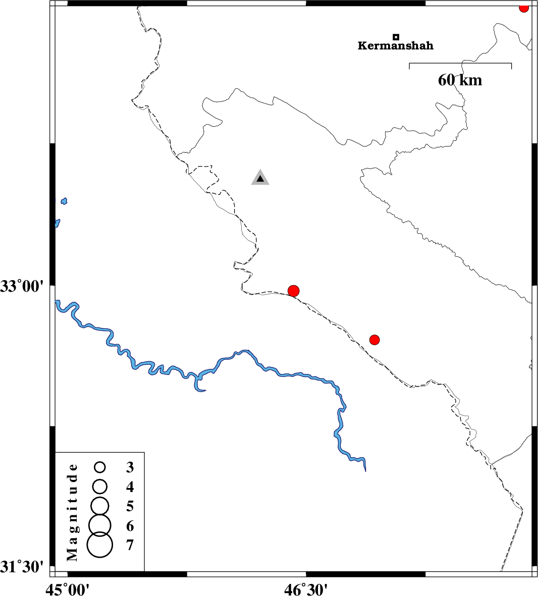 | 2008/02/04 | 12:38:30.2 | 16:08:30.2 | 32.71 | 46.93 | 41 | ML2.8 | 31 km West of Dehloran, Ilam Province |
